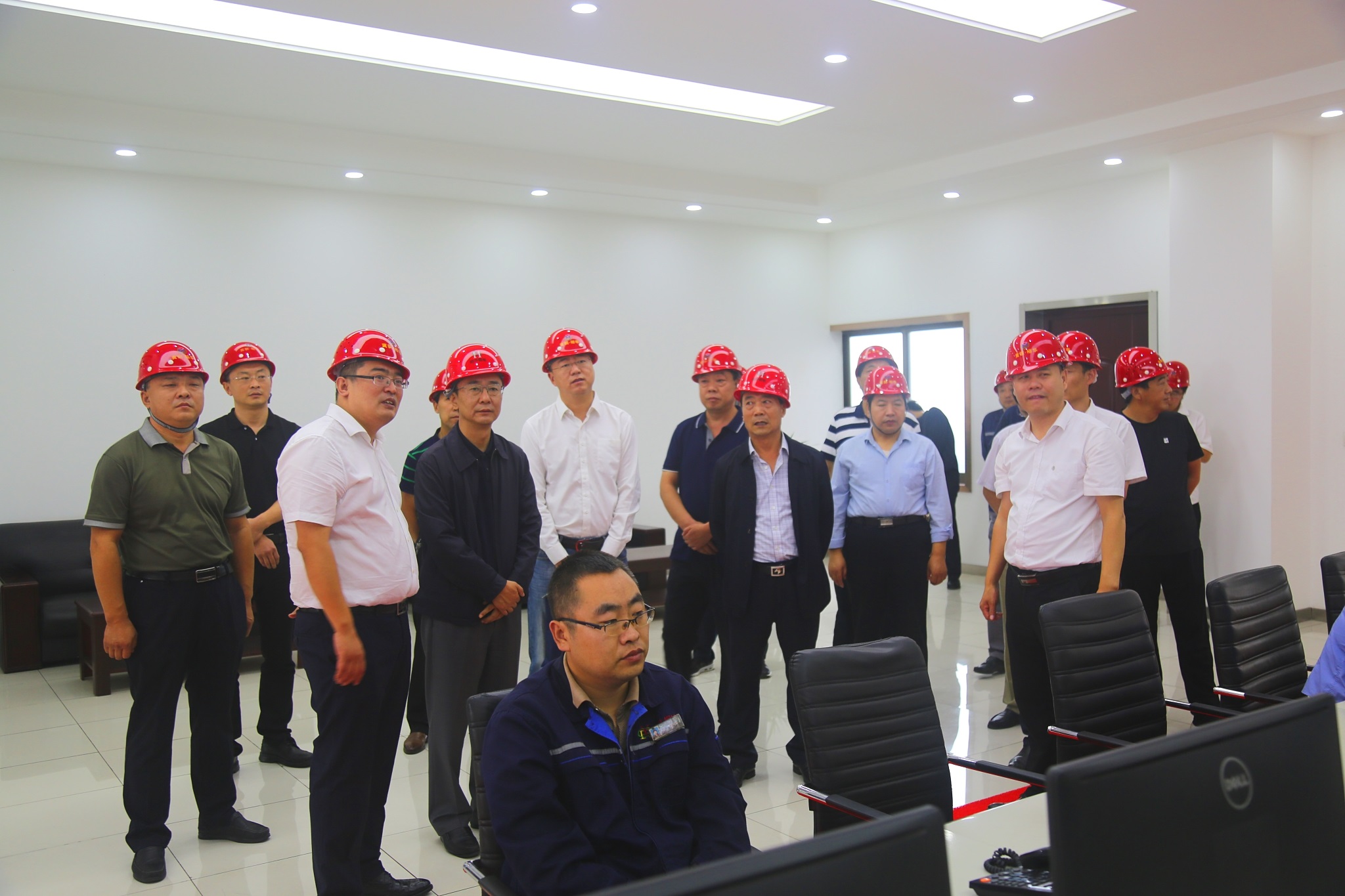 在智能管理中心,董事長(zhǎng)向楊書(shū)記一行介紹我公司管控治一體化平臺(tái)建設(shè)及分表記電等內(nèi)容。